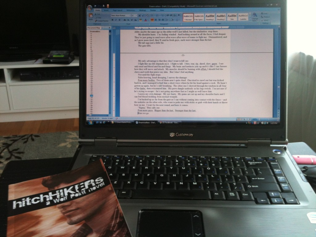 editingLook, see, I’m editing Dreamwalkers!  The TV is even off!  (Made possible due to the completion of my “Parks & Rec” marathon).