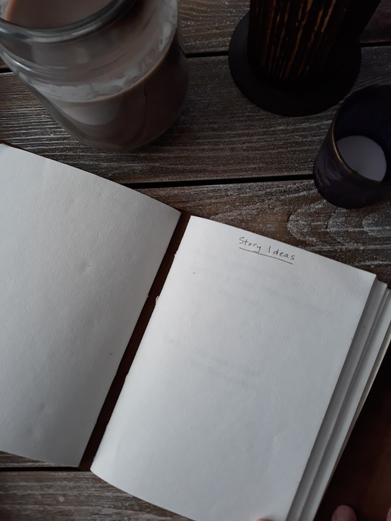 An inspiration does not always come fully formed and ready to be a novel, so I write them down in a cool leather-bound book I bought at a renaissance faire.
