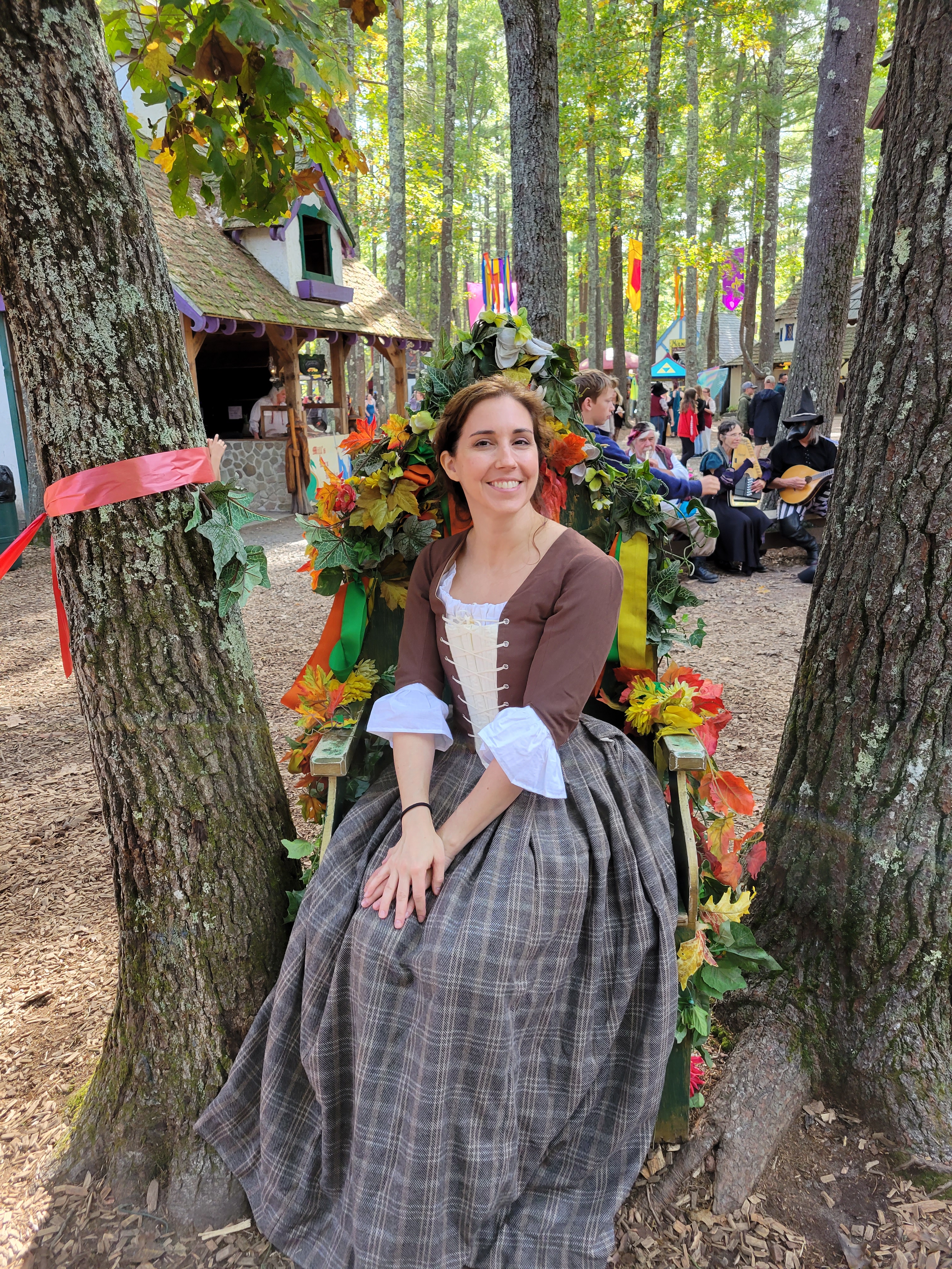The first costume, which I made a few years ago, is Claire from the Outlander series. I used two of the official costume patterns (Pattern 8161 for the outer garments, and Pattern 8162 for the undergarments). I tried to get the colors as similar to those on the TV show as I could, and I’m super happy about how it turned out!